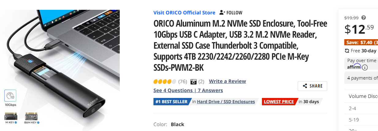 그럼 NVMe memory와 enclosure를 구매해서 직접 제작하면 얼마나 들까? 그리고 실제 전송 속도는 얼마나 나올까?